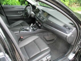 BMW 520i в черном цвете выглядит многогранно. При этом грозная внешность пятой серии является ее визитной карточкой. Агрессия и вызов – в каждой детали. Чего только стоят фары с фирменными «ангельскими глазками» или выразительные линии кузова. Этот автомобиль – боец по натуре, он всем своим видом показывает готовность к схватке. За его рулем любой мужчина будет смотреться респектабельно и привлекательно, ведь BMW пятой серии, словно дорогой костюм, подчеркивает достоинства и скрывает недостатки.