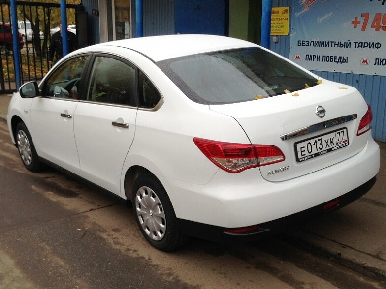 Московская прокатная компания «АрендаАвто-кнл» предлагает взять в аренду Nissan Almera IV MT белого цвета с механической коробкой передач по низкой цене.